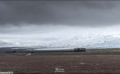 货运列车在昆仑山脉中盘旋