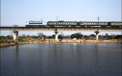 2010年2月16日。广东江村。广州-衡阳列车驶过江村铁桥北上。(车底为K10次,广州-信阳,该车已经停运。套跑交路为K9-K9040-K9039-K10)(IMG-5961-100216)