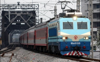 2003年。广州下元站。SS8牵引广深城际准高速列车前往深圳。(P2701)